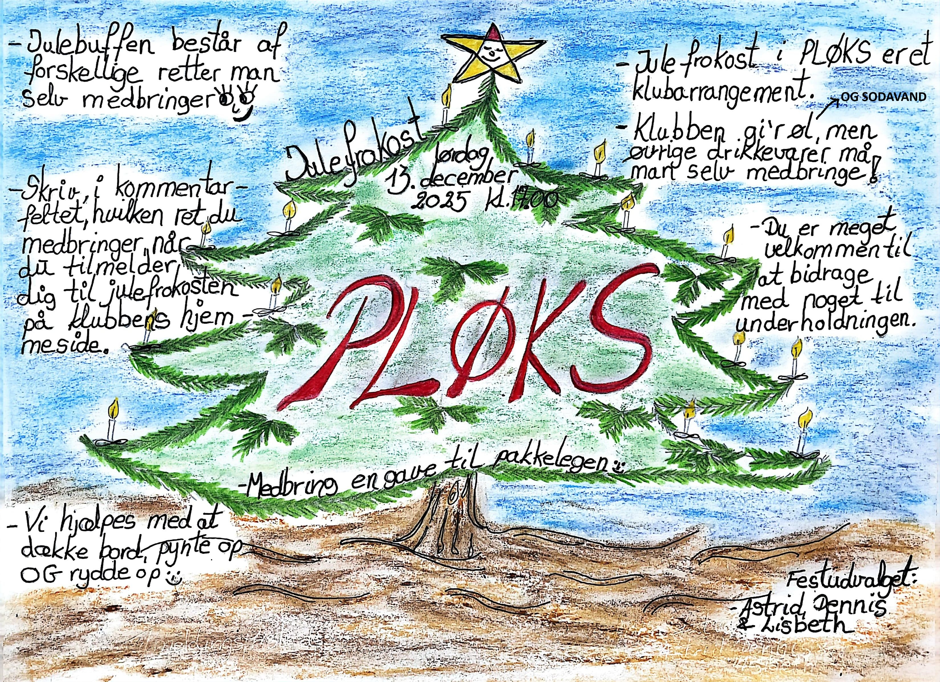 Julefrokosten er igen i år et rigtigt PLØKS-klub-arrangement - altså vi hjælpes ad og gør det sammen! PLØKS sørger for rammerne og udstyret, og så hjælpes vi ad med at dække bord, arrangere julelege og rydde op. Find gerne selv på noget at bidrage med - ellers skal vi nok hjælpe dig ;-)